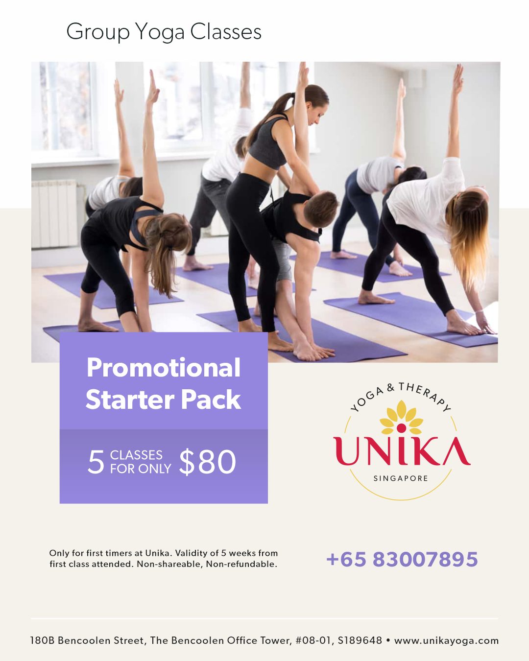 At $80 for 5 classes, with a validity of 5 weeks. Our promotional Starter Pack is non-shareable and non-extendable.